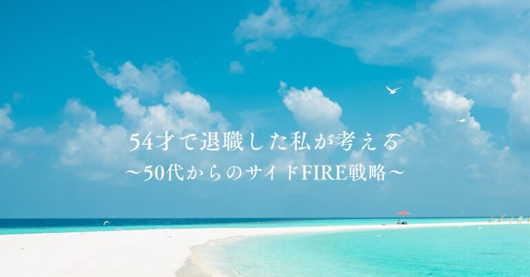 3shingo 皆さん、 こんにちは! 「サイドFIREに憧れるけど、 50代からじゃ遅いのでは?」 私自身、54歳で退職を決断したときに 同じ不安を抱えていました。 でも実際に試行錯誤しながら 資産形成を進めると、 “フルリタイアではなく、 収入を組み合わせるサイドFIRE” なら十分に現実的だと気づきました。 この記事では、 50代からでも間に合う サイドFIREに向け […]