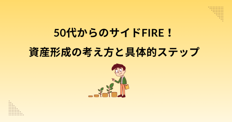 3shingo 皆さん、 こんにちは! 「サイドFIRE(経済的自立と 必要最小限の労働の両立)」 という言葉を耳にすることが増えました。若い世代だけのものと思われがちですが、 実は50代からこそ 現実的に実践できる選択肢です。 私自身、54才で会社を辞め、 生活費の一部を投資から、 残りをやりがいのある仕事から得る “サイドFIRE的な生き方” にシフトしました。 今回は、50代からのサイドFI […]